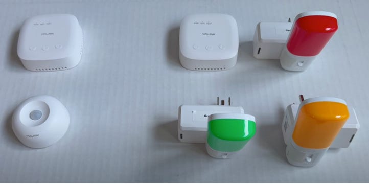 There are three YoLink smart plugs with colored lights: one for green, one for yellow, and one for red. They automatically scan for motion detection between 5:00 AM and 5:31 AM. You can adjust the schedule to meet your needs.