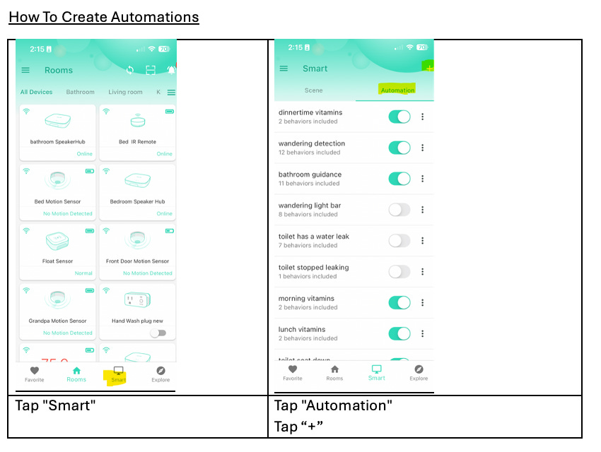 Be sure to install the YoLink motion sensor in a location where your dad would be detected during his morning routine.