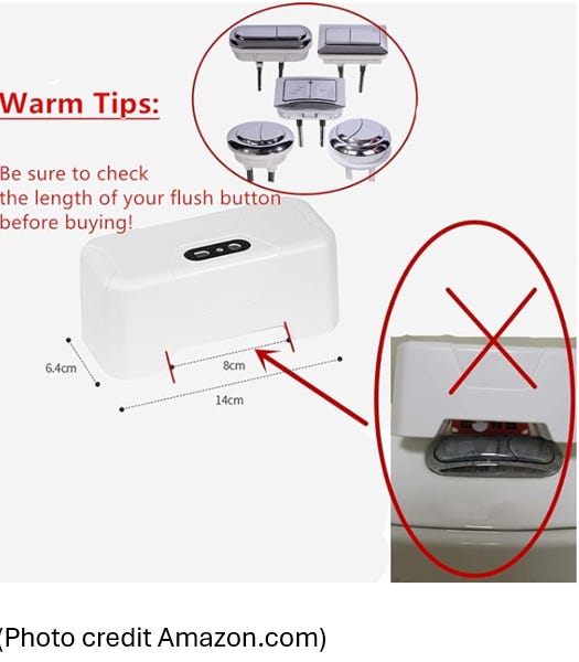 This works only with toilets that have top-mounted buttons of the type shown below.