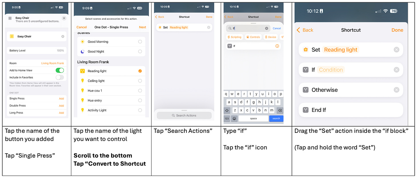 In addition, HomeKit supports converting a button action to a “Shortcut” so that you can create “toggle” actions, which is great for smart lights and smart plugs.