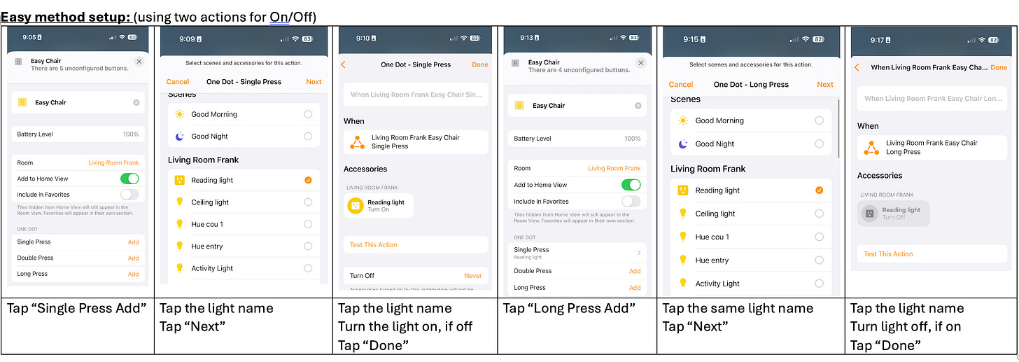 I will use the Onvis smart button in the following description as I find it more capable, even when used as a single button. The arre button is excellent if you need a smaller size.