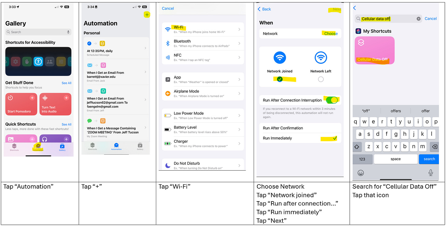 This example uses Automation to detect your home Wi-Fi network and turn off your cellular data. A second automation turns it on when you leave home.