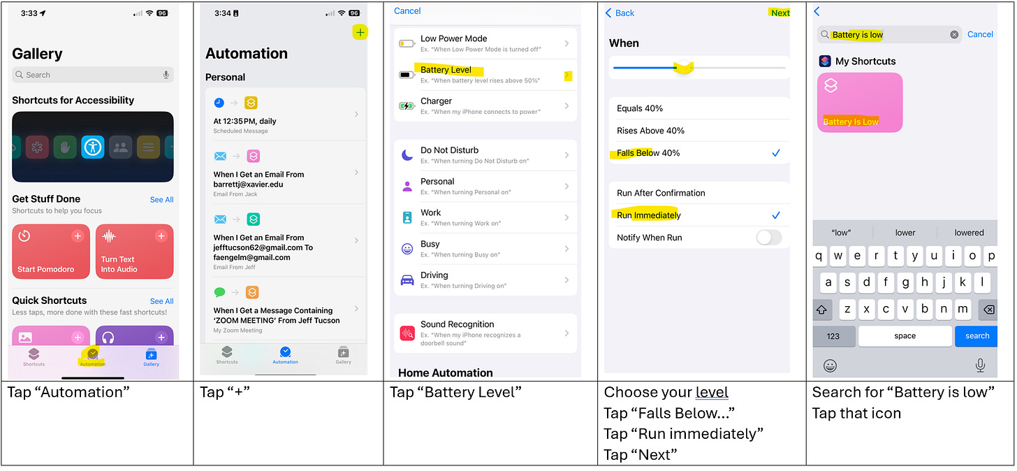 This YouTube video will walk you through the steps to create a Shortcut and an Automation.