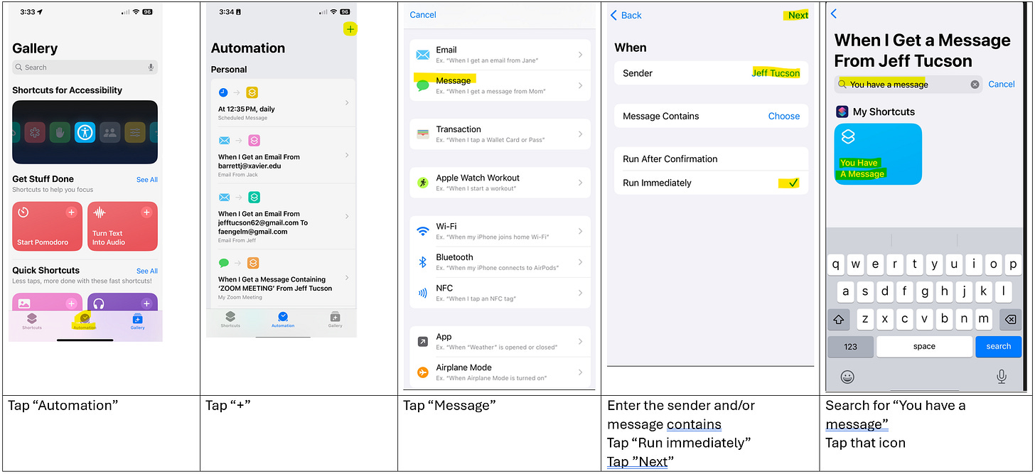 Note: This technique does NOT speak the actual contents of the message, it just speaks the information stored in the Shortcut. If you would like to have the actual message read out to you, take at look at my Issue # 5 “I wish my iPhone Would Speak Notifications” with the understanding that this only works if the device is locked.